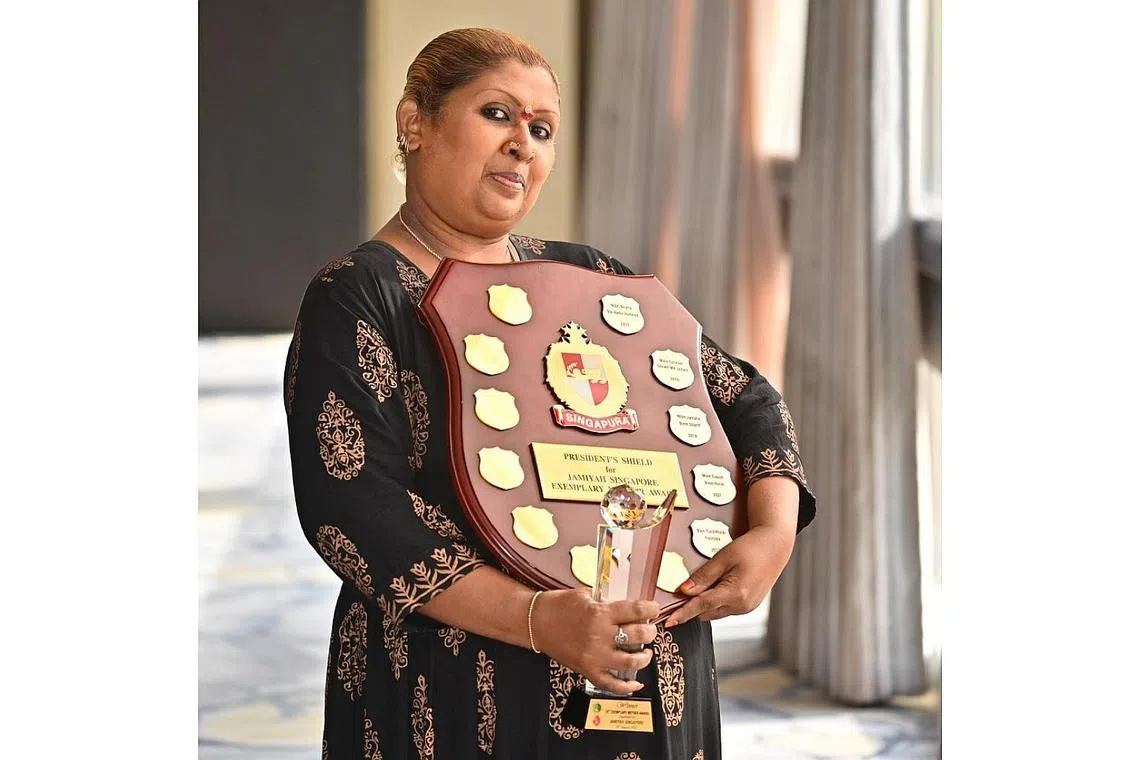 IBU TELADAN: Cik Pandithurai Parimala menerima Anugerah Ibu Teladan 2022 anjuran Jamiyah Singapura pada majlis yang diadakan di Swissotel The Stamford semalam. - Foto BM oleh DIOS VINCOY JR -