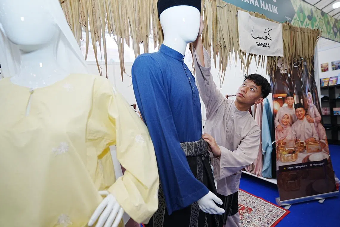 Baju tradisional yang tersusun rapi di Bazar Ramadan Kampong Gelam menarik perhatian kerana potongannya yang klasik dan ‘longgar’ bak pakaian ‘orang lama’.