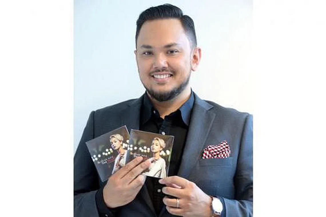 MENITIKBERATKAN BAKAT BELAKANG TABIR: Imran Ajmain menunjukkan CD lagu 'Titik Merah' nyanyian Aisyah Aziz yang kini boleh dimiliki pada harga $10. - Foto JOHARI RAHMAT -