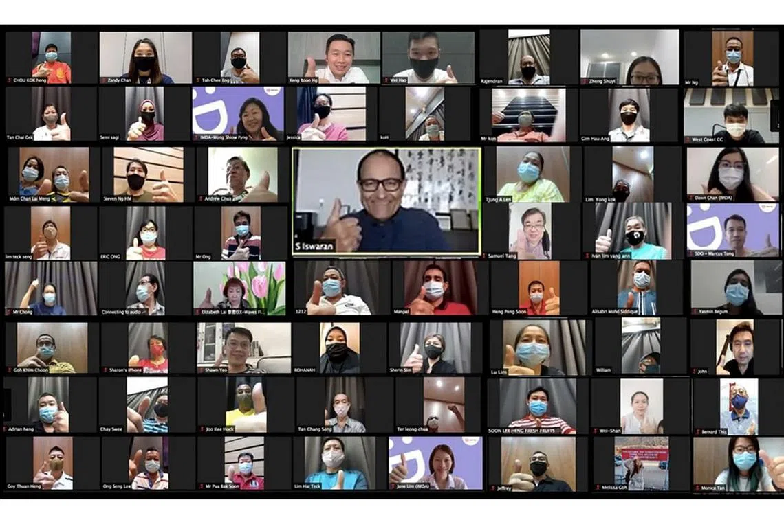 GALAK PENJAJA DAKAP PENDIGITALAN: Menteri Perhubungan dan Penerangan S Iswaran menyertai lebih 50 penjaja dalam webinar yang diadakan semalam untuk berkongsi tentang inisiatif Hawkers Go Digital. - Foto MCI -