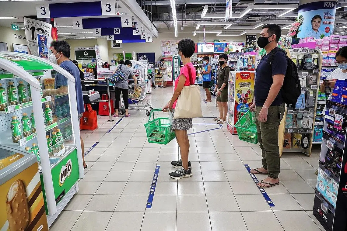 JIKA anda membeli-belah di cawangan NTUC FairPrice, anda mungkin akan tetap melihat tanda jarak sosial di lantai semasa hendak membayar barangan anda.