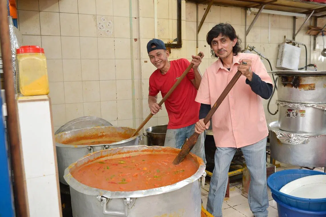 BERIANI 'POWER': Encik Syed Hafeez (kanan) bersama pekerjanya yang sedang menyediakan lauk dalca yang akan diberi bersama Nasi Beriani Dum semasa penghantaran ke rumah. - Foto BH oleh SHINTARO TAY -