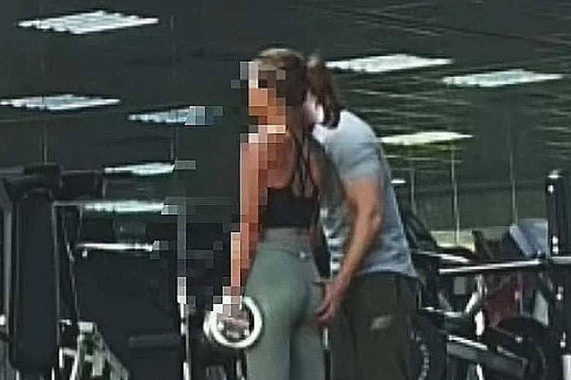 TIMBUL TUDUHAN: Gambar dari video menunjukkan seorang jurulatih dituduh melakukan sesuatu yang tidak sepatutnya kepada wanita yang dilatih di gimnasium. - Foto INSTAGRAM/cheryfit_sg -