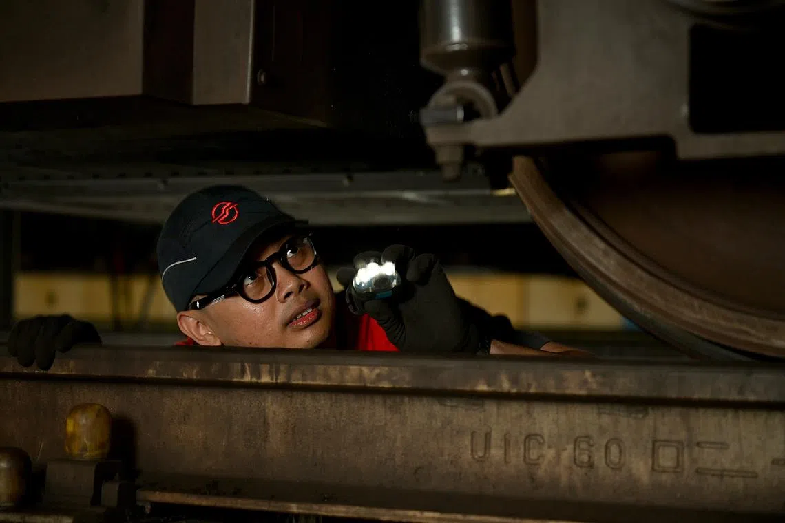 Jurutera kereta api SMRT sengkang mata, baiki tren