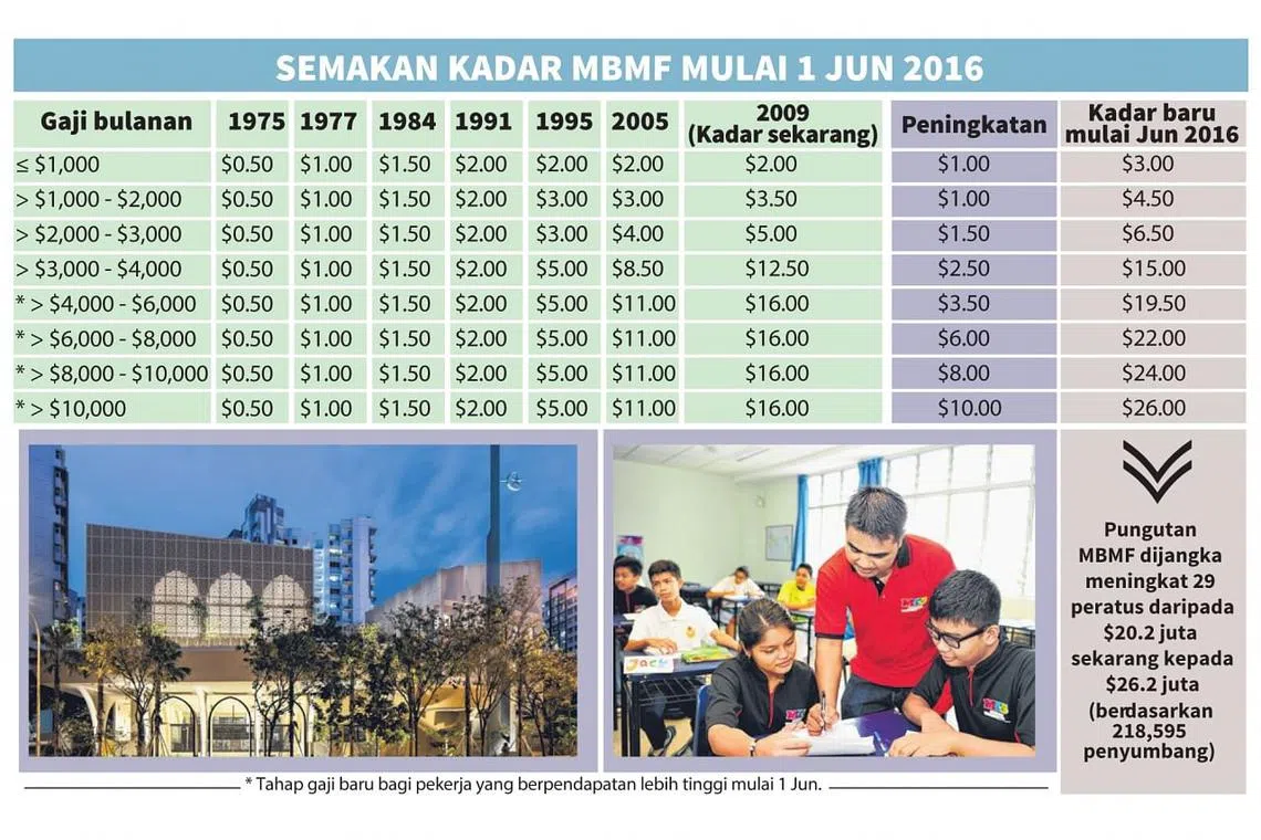 Menteri Bertanggungjawab bagi Ehwal Masyarakat Islam, Dr Yaacob Ibrahim, berkata kenaikan kadar itu akan menghasilkan dana tambahan sebanyak $6 juta setahun kepada pungutan MBMF yang kini mencecah $20.2 juta setahun.