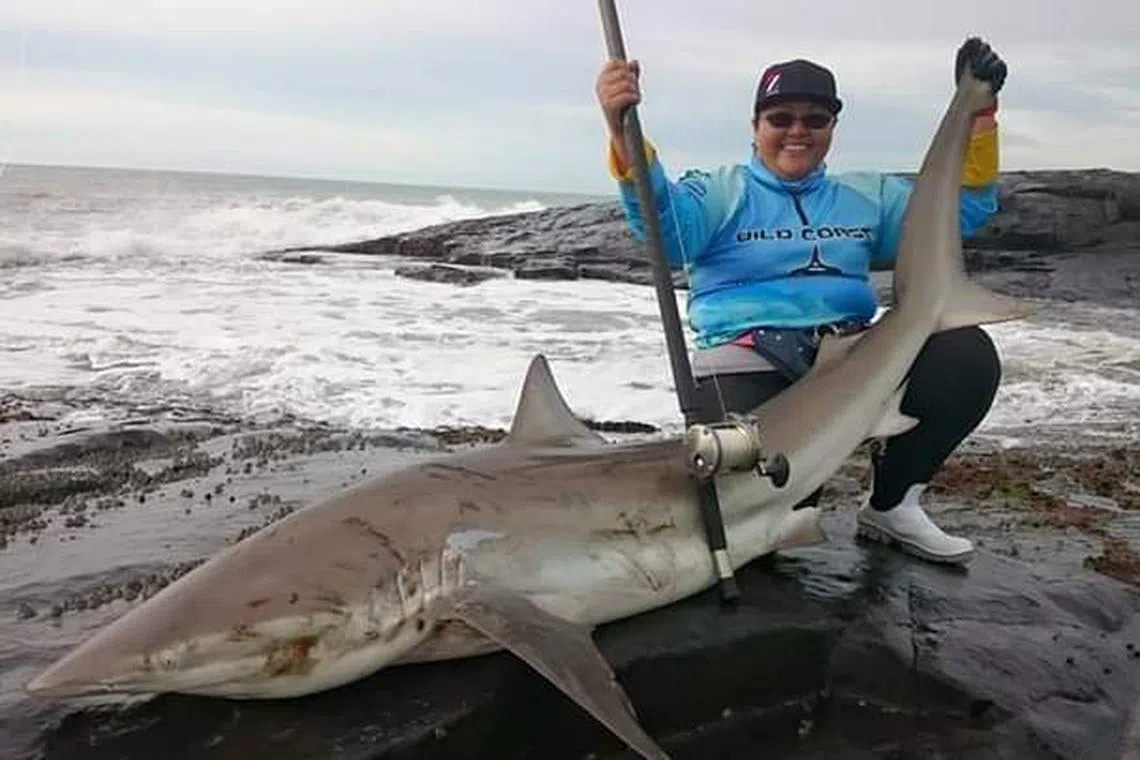 Cik Nurshafika Salleh menangkap ikan jerung tembaga di Afrika Selatan pada 2015.