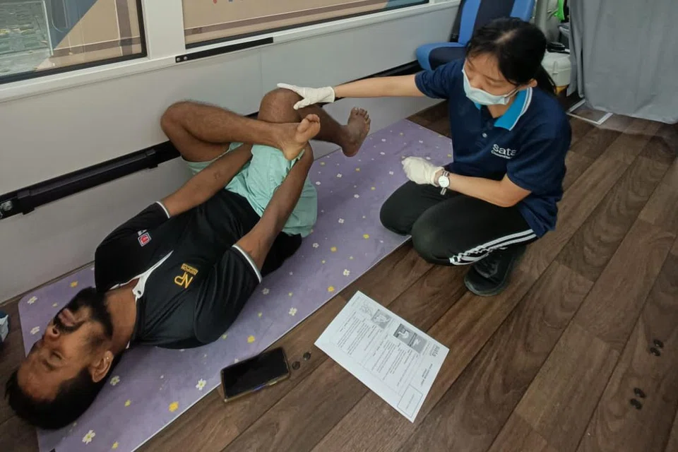 Khidmat hasil kerjasama SATA CommHealth dengan pertubuhan tidak mengaut untung, Migrant Well Singapore, disediakan melalui bas kenderaan elektrik (EV) yang bergerak antara tiga pusat perubatan untuk pekerja migran.