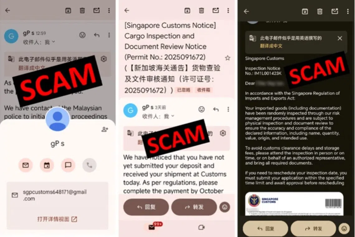 Kastam Singapura berkata dalam satu kenyataan pada 3 Disember bahawa penipuan tersebut, yang dikesan sejak beberapa bulan kebelakangan ini, melibatkan e-mel dan kiriman WhatsApp yang mendakwa bahawa bungkusan atau jongkong emas ditahan oleh agensi itu.