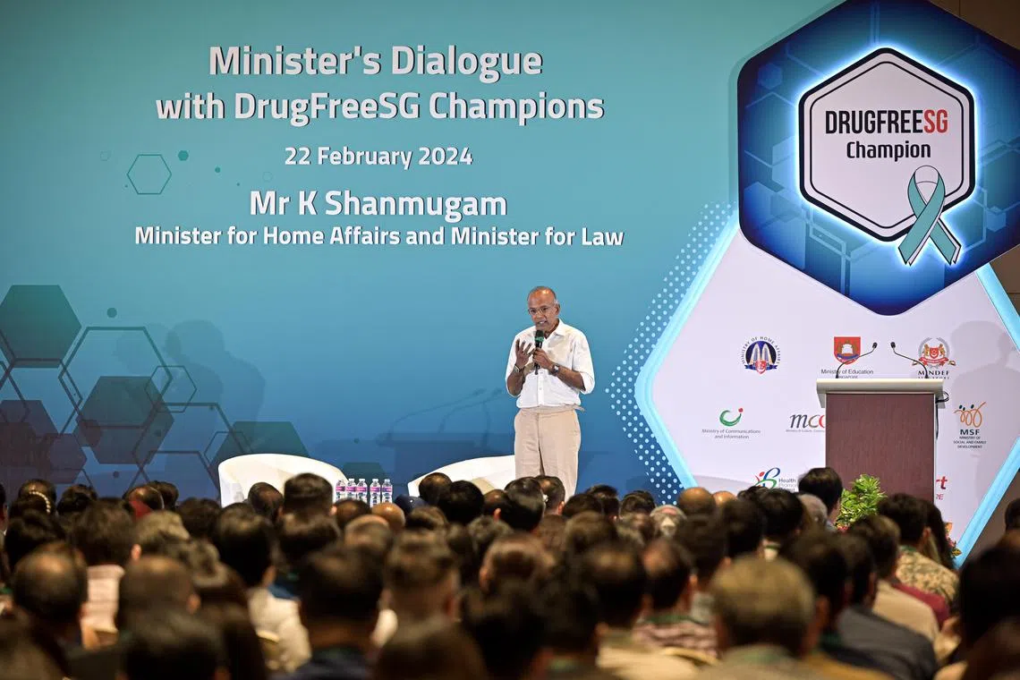 Encik Shanmugam berkata demikian dalam menjawab soalan yang diajukan pada sesi dialog dengan Duta SG BebasDadah atatu DrugFreeSG Champions yang diadakan di Max Atria pada 22 Februari.