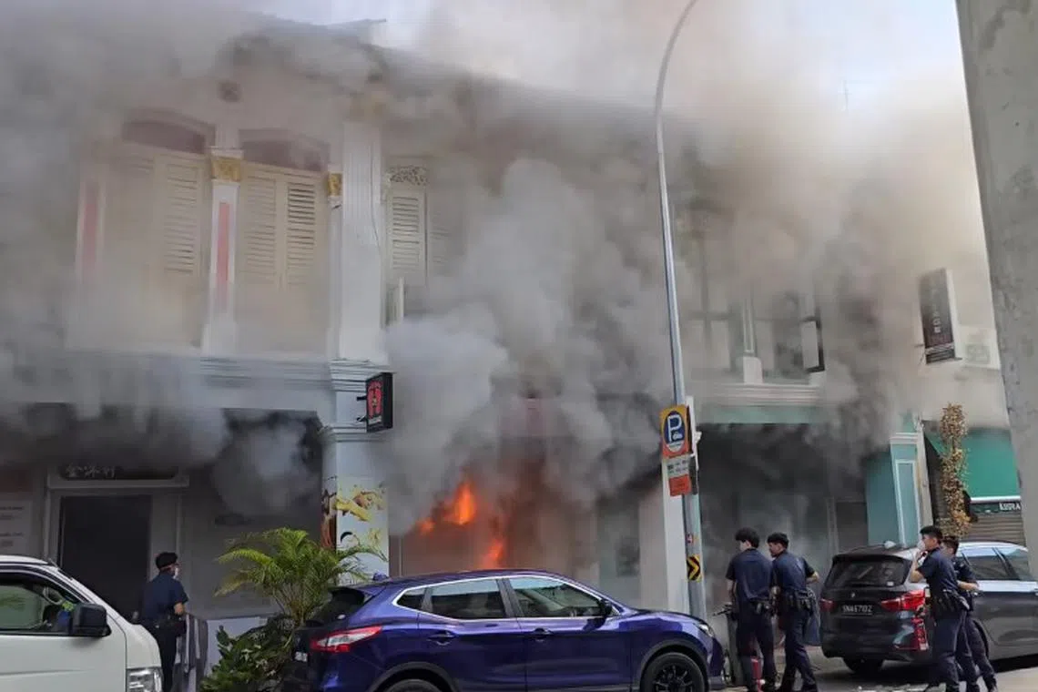 Dalam satu rakaman kebakaran itu yang disiarkan di laman Facebook Truly SG pada 3 Februari, kepulan asap tebal boleh dilihat dari tingkap kedai itu, yang kelihatan seperti rumah urut, dan dua unit berdekatan.