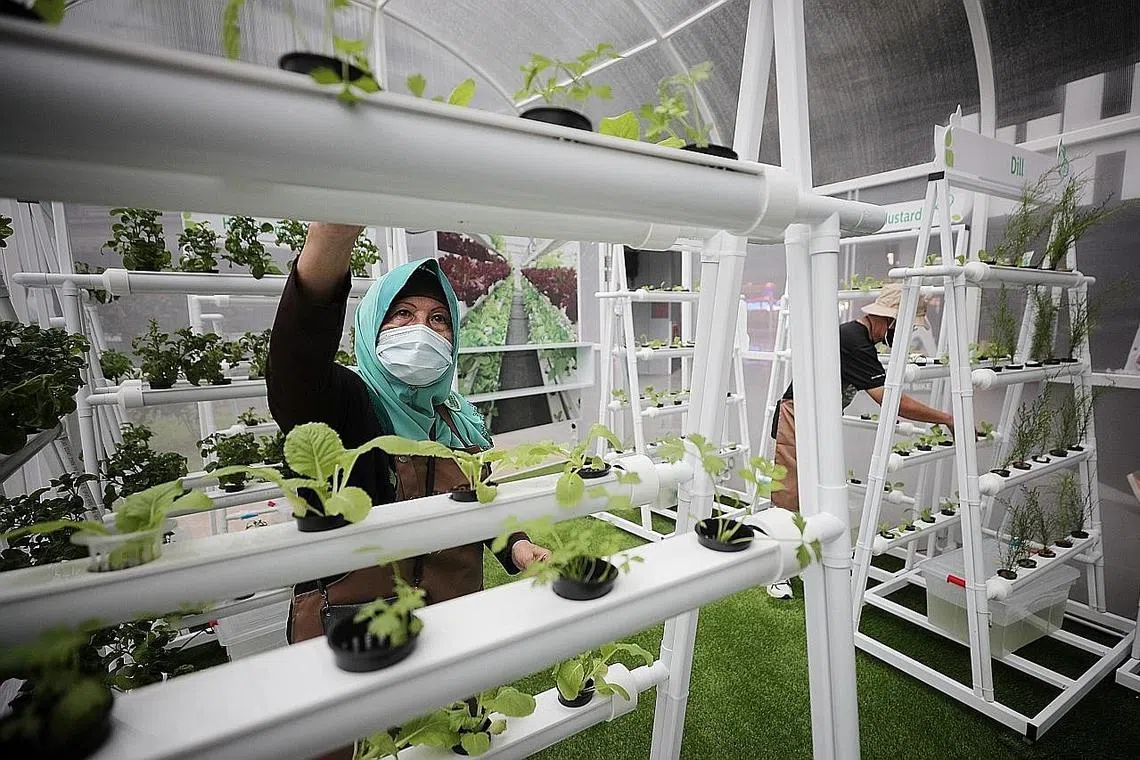 Inilah yang dapat dilakukan di Our Green Hut, kebun tegak menjalar hidroponik - satu tarikan baru di Our Tampines Hub (OTH) yang dilancarkan semalam.