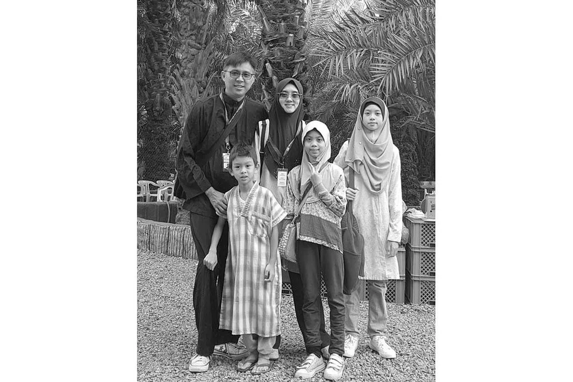 "Apa lagi, dengan pelbagai gangguan pada hari ini (dari media sosial dan teknologi), mempunyai asas agama penting supaya anak-anak saya sekurang-kurangnya dapat membezakan antara yang baik dan kurang baik dan mendapat maklumat berkenaan agama daripada sumber bertauliah." - Encik Noh Salleh, bersama isteri dan anak-anak