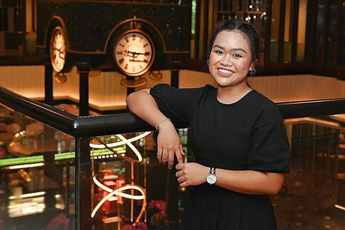 Cik Qistina merupakan antara 103 individu yang menerima biasiswa dan anugerah guru di Majlis Penyampaian Biasiswa Guru anjuran Kementerian Pendidikan (MOE) di Orchard Hotel Singapore semalam.