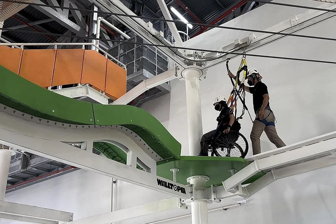 Ia juga menggunakan sistem 'winch' atau alat penarik menggunakan kabel, yang membolehkan orang yang berkerusi roda menggunakan kemudahan di situ.
