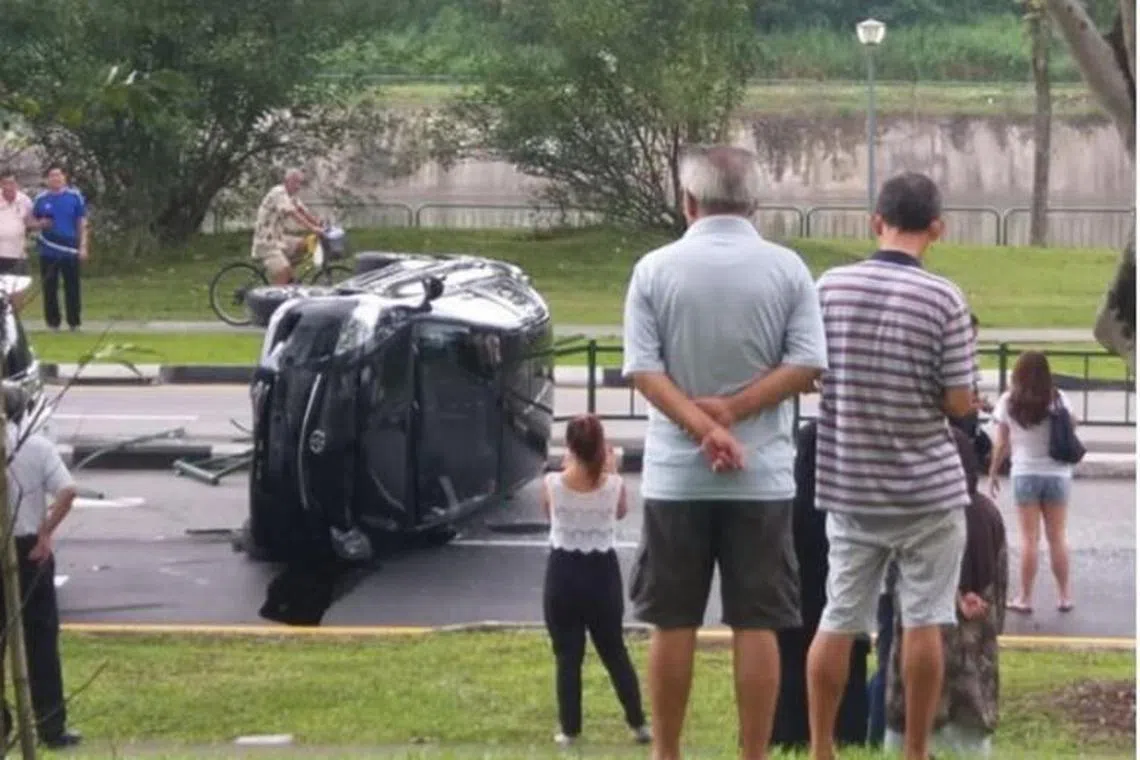 Kereta terbalik, 3 orang cedera dalam nahas di Hougang