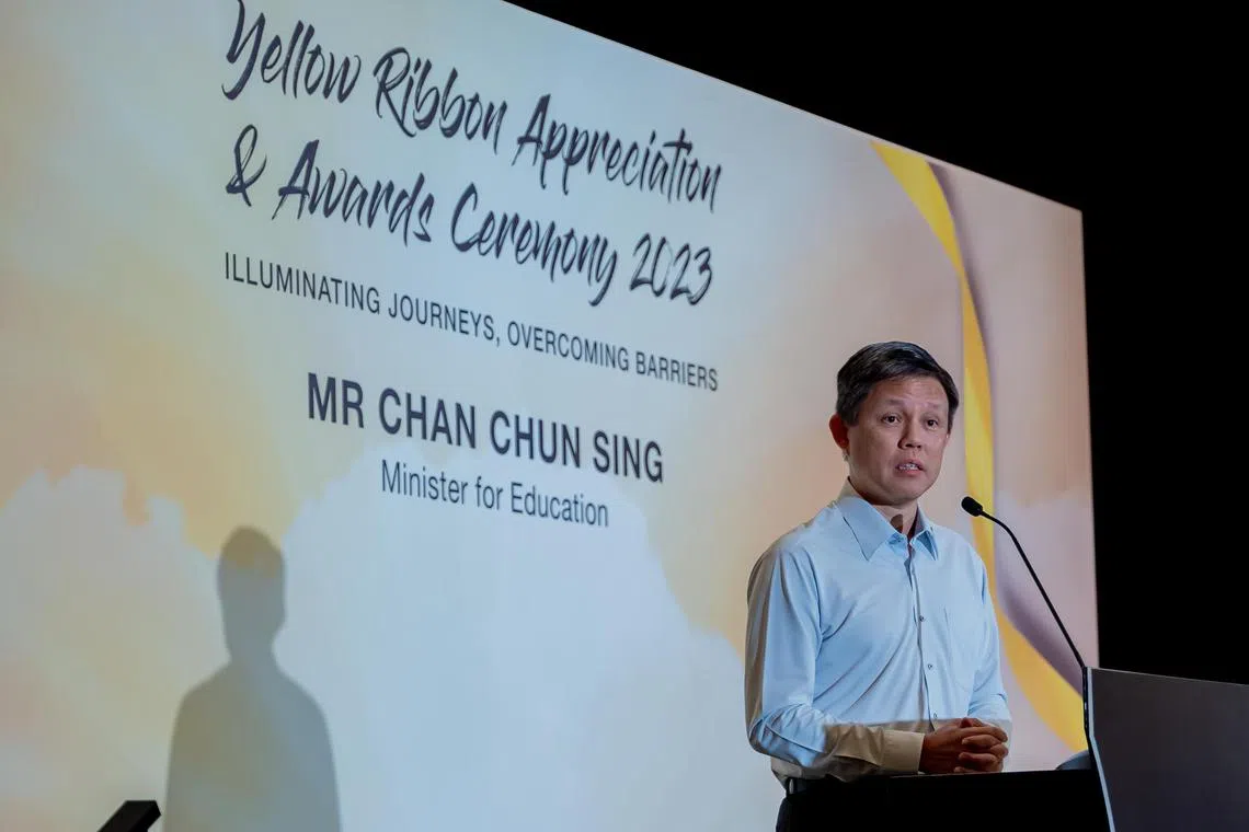 Berkata demikian pada Sabtu di Majlis Penghargaan & Anugerah Reben Kuning (YRAA) 2023 di Ekspo dan Pusat Konvensyen Marina Bay Sands, Encik Chan memuji usaha individu, pertubuhan dan rakan kongsi masyarakat atas sumbangan besar mereka untuk menyepadukan semula bekas pesalah ke dalam masyarakat.