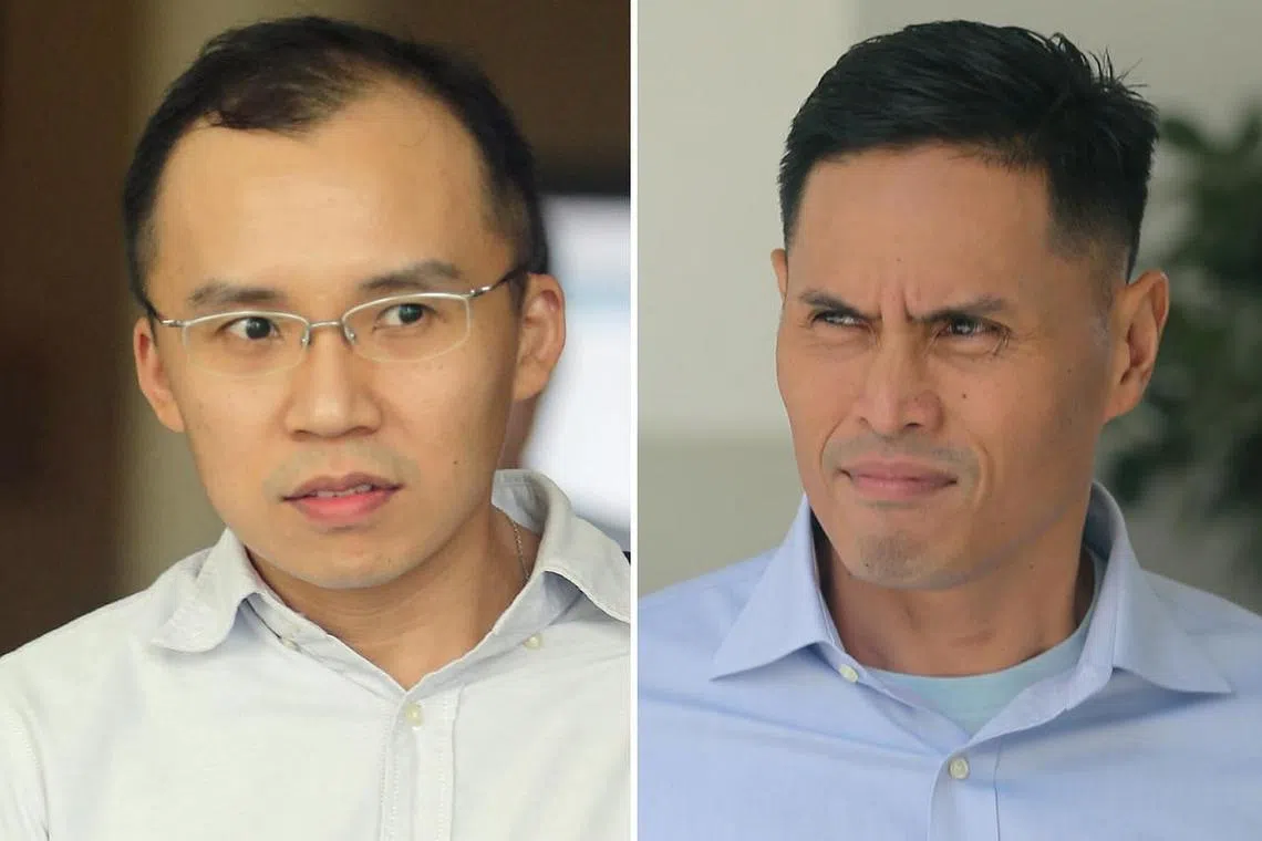 DIDAKWA MAIN PERANAN: Dua pegawai SCDF, Kenneth Chong (kiri) dan Nazhan, kedua-duanya didakwa terlibat dalam kes kematian Koperal Kok. -