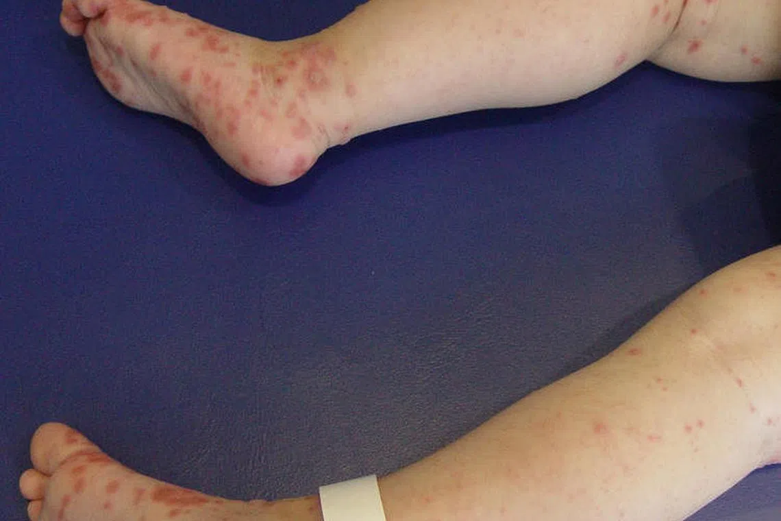 Gejala biasa HFMD termasuk demam, sakit tekak, ulser di mulut dan ruam atau lepuh kecil di telapak tangan, telapak kaki dan punggung. - Foto WANBAO
