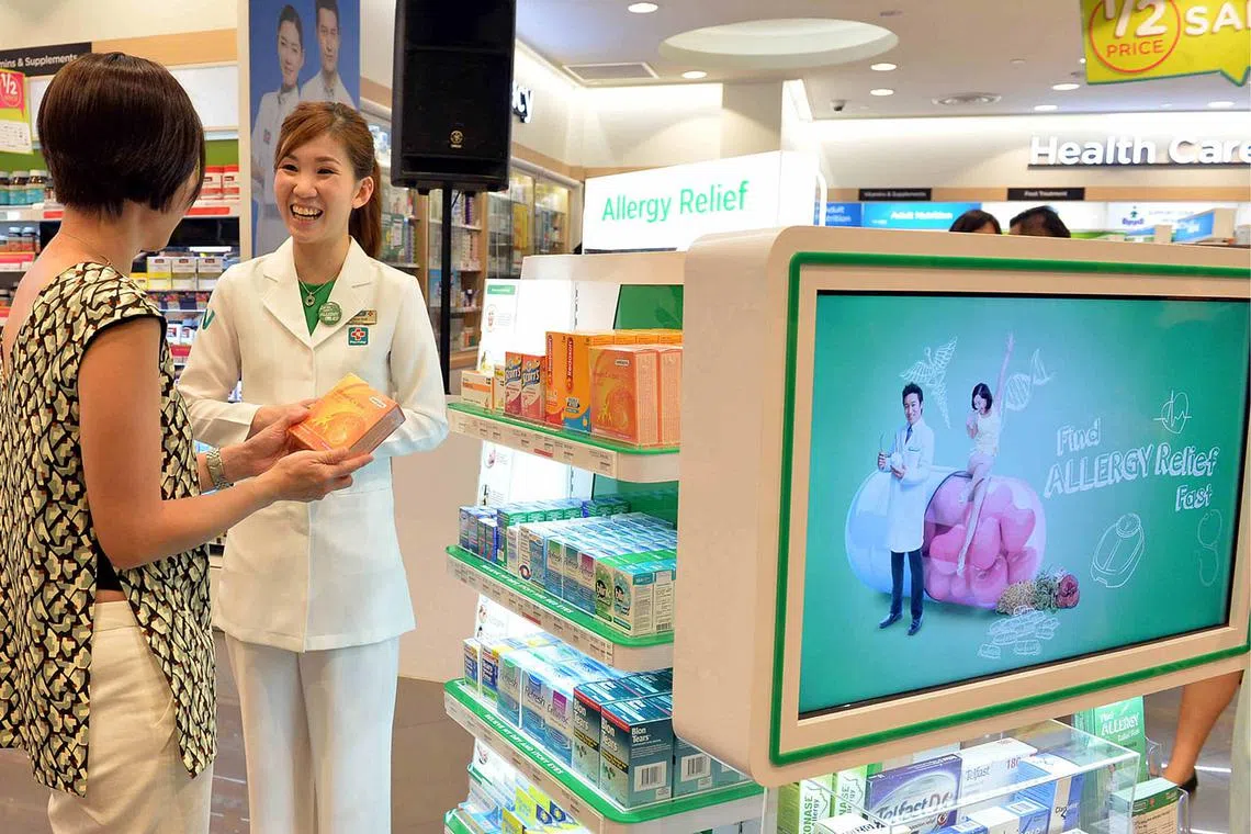 MUDAH CARI UBAT: Bahagian Meredakan Alahan ini ditubuhkan di farmasi Watsons cawangan Ngee Ann City bagi memudahkan pesakit yang menghidap alahan mendapatkan ubat serta konsultasi pakar farmasi. - Foto M.O. SALLEH -