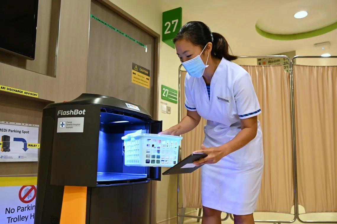Tiga robot bantu jururawat di Hospital Besar Changi