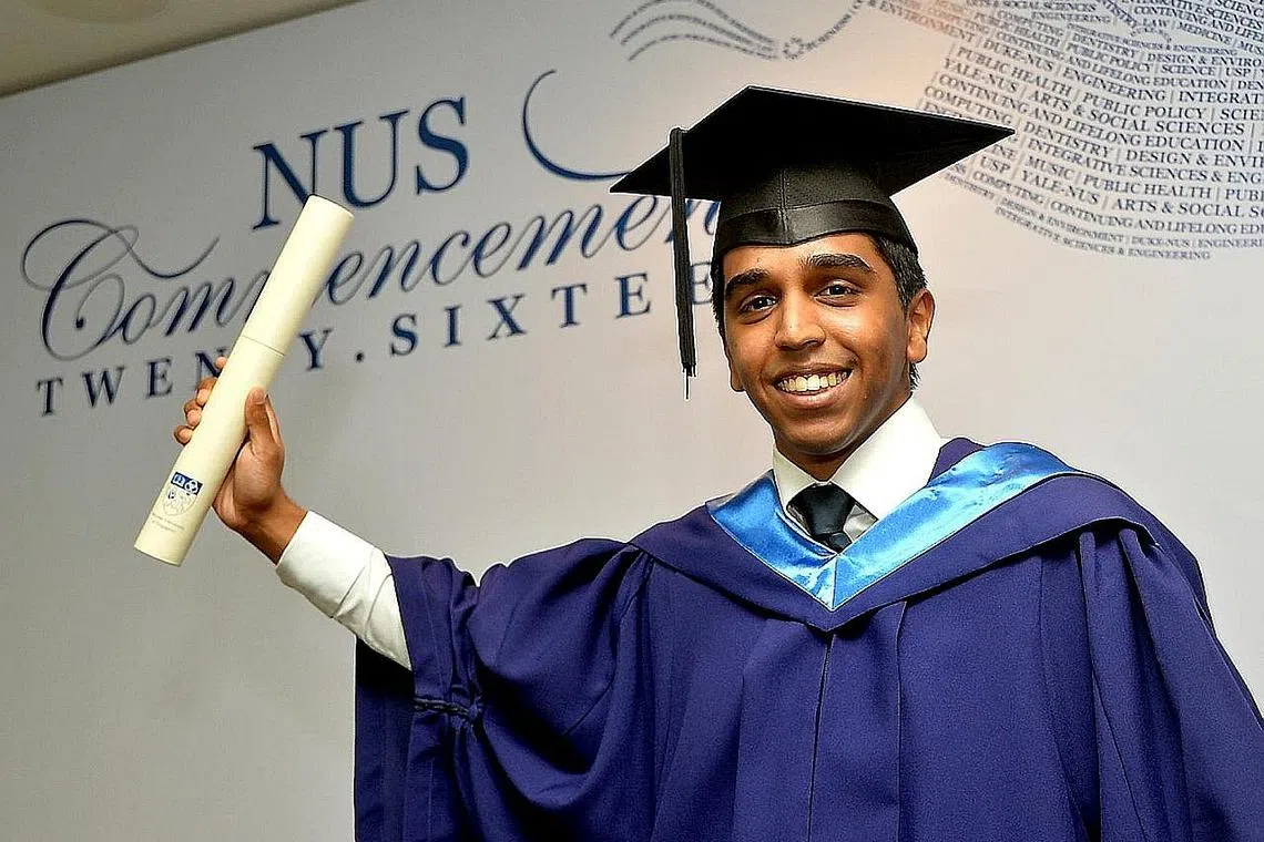 Kerja keras dan segala masalah yang dihadapi tidak dijadikan rintangan atau mematahkan semangat dalam mengejar cita-cita, malah ia membolehkan enam siswa Universiti Nasional Singapura (NUS) ini cemerlang dalam bidang masing-masing. Mereka merupakan antara 6,491 siswazah tahun ini yang menerima ijazah dalam majlis konvokesyen yang diadakan di Pusat Budaya Universiti (UCC) NUS baru-baru ini. Laporan FARAH REZAL (rfarah@sph.com.sg).