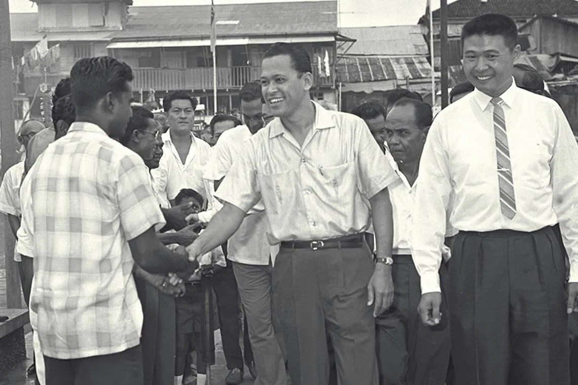 TINGGALKAN LEGASI: Allahyarham Othman Wok, yang gigih memperjuangkan dasar berbilang kaum dan Menteri Hal Ehwal Masyarakat pertama Singapura, tiba di Balai Rakyat Chong Pang bagi sambutan Tahun Baru pada 1966. - Foto fail -