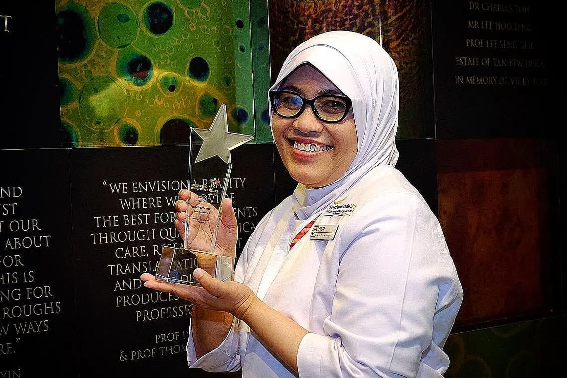 Semalam, jururawat berpengalaman 32 tahun itu diiktiraf dengan anugerah Superstar di Anugerah Khidmat Bermutu Kesihatan Singapura ke-12 semalam.