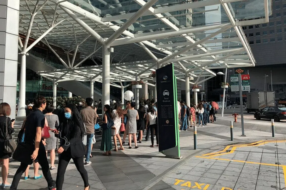 Di Suntec City, orang ramai telah mula beratur di luar bangunan pejabat seawal 8 pagi.