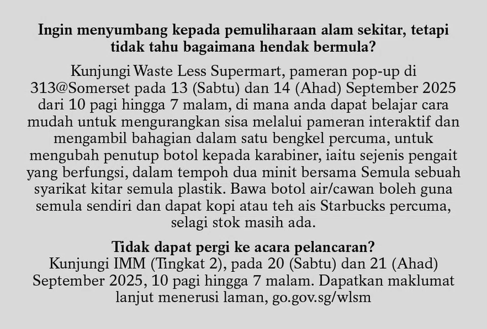 Untuk mendapatkan lebih banyak tip mengurangkan sisa, layari laman web, go.gov.sg/sytwl.
