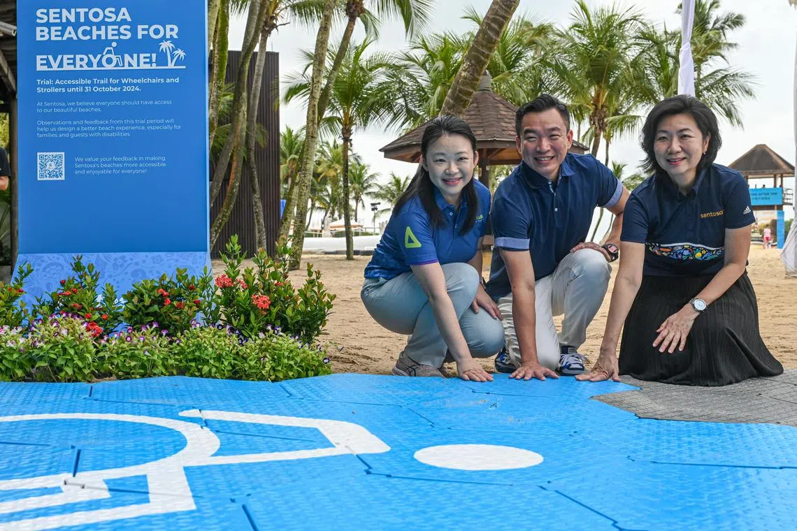 Golongan kurang upaya kini boleh mengakses pesisir dan pasir di Pantai Siloso dengan pelancaran laluan pantai baru.
