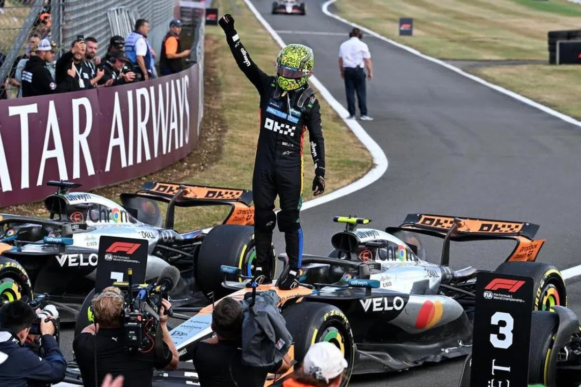 Norris disambut dengan sorakan gemuruh daripada para peminat British selepas memenangi perlumbaan di tanah airnya buat kali pertama dan kini hanya ketinggalan lapan mata di belakang pendahulu kedudukan pelumba, Piastri.