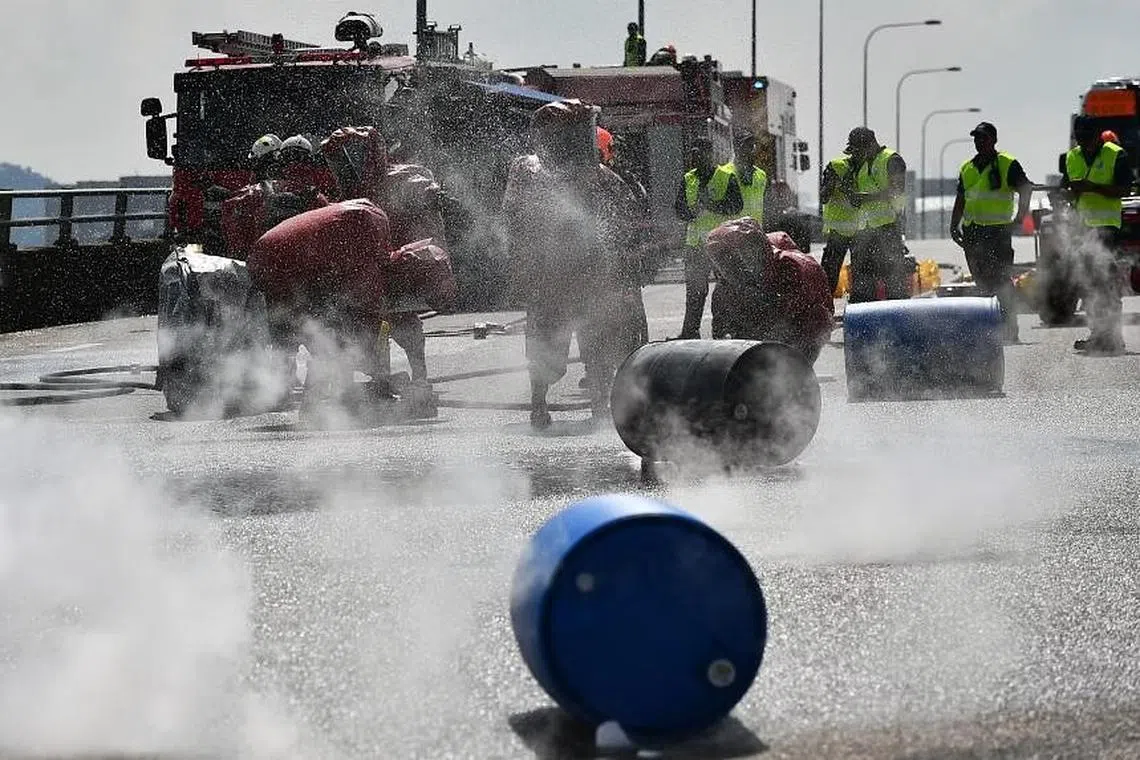 Latihan atasi tumpahan kimia di Linkedua Tuas 26 Jul