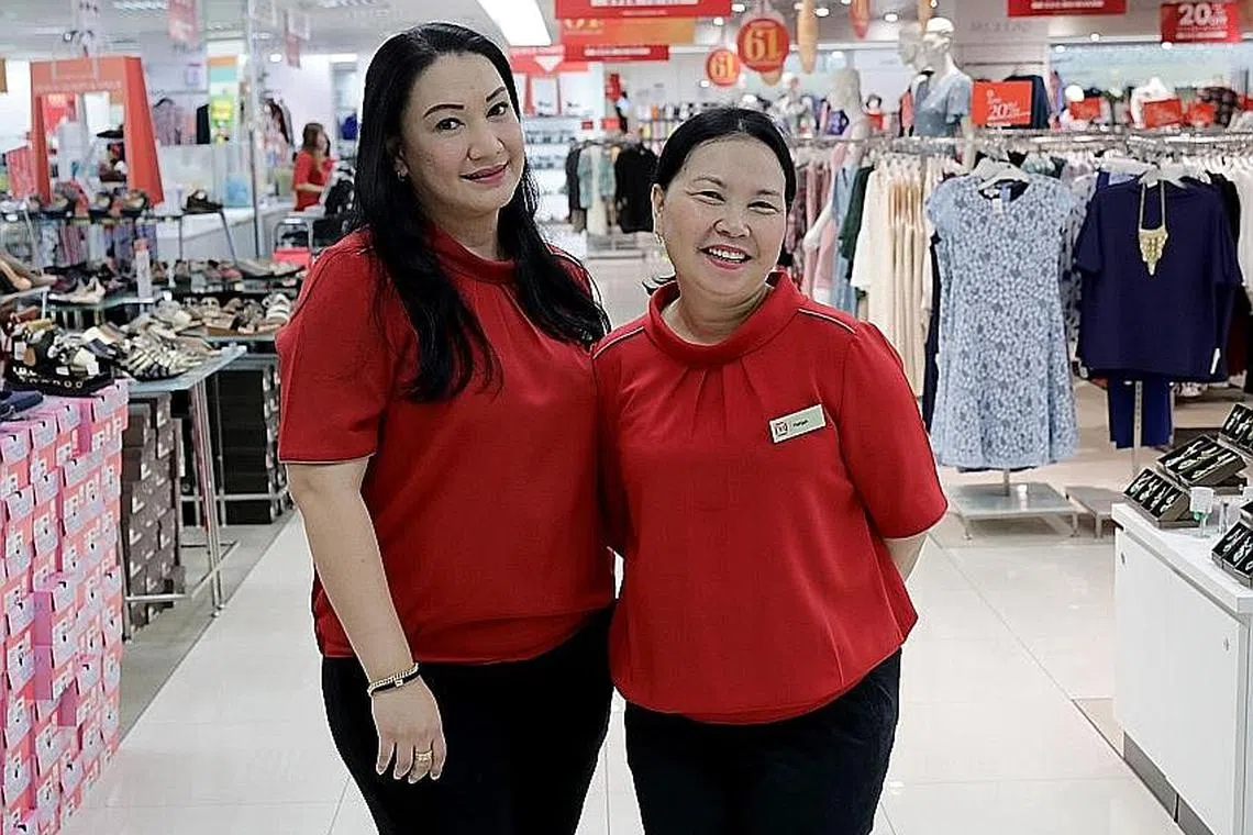 LEBIH BERSEMANGAT: Itulah yang dirasakan dua rakan sekerja di Metro Causeway Point, Cik Hatijah Sahar (kanan) dan Cik Faizah Mustapar, yang turut serta dalam pelbagai program hidup sihat di bawah inisiatif Persatuan Perniagaan Orchard Road (ORBA). -