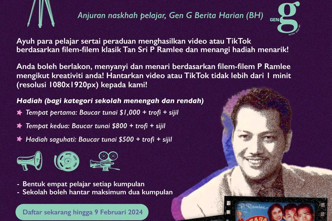 Lebih 100 kumpulan dari sekolah menengah dan rendah akan bertanding dalam Peraduan TikTok dan Video berdasarkan filem-filem seniman agung, Allahyarham Tan Sri P. Ramlee.