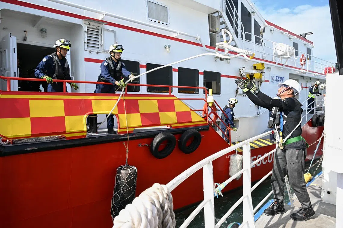 Sebagai sebahagian daripada minggu Singapore Safety@Sea 2024, latihan tersebut mensimulasikan perlanggaran antara feri elektrik dengan diesel di perairan antara Marina South Pier dengan Kepulauan Selatan.