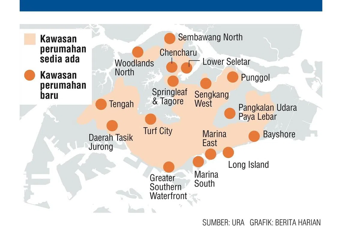 Pelan itu menunjukkan kawasan perumahan baru akan dibina di tempat seperti Greater Southern Waterfront (GSW), Marina East, dan Marina South.