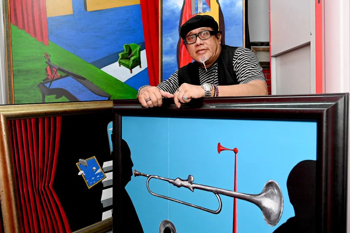 Pelukis, Rosihan Dahim, bergambar bersama beberapa karya beliau. - Foto BH oleh KHALID BABA