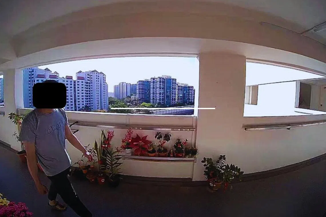 Klip rakaman pada 31 Januari sekitar 9.35 pagi itu menunjukkan lelaki tersebut berjalan melepasi unit Cik Lim dan mencuri pakaian dalam yang tergantung di luar.