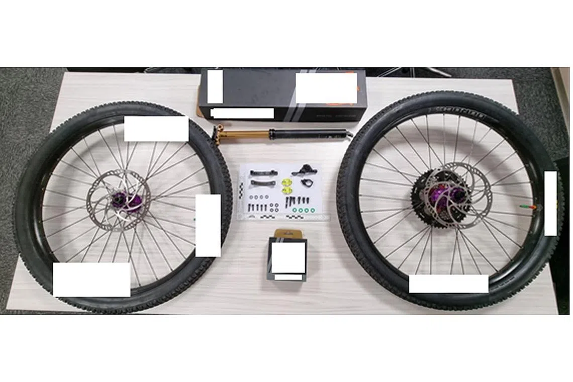 Pelbagai bahagian basikal, satu telefon bimbit dan tiga kad bank telah dirampas dan siasatan sedang dijalankan.
