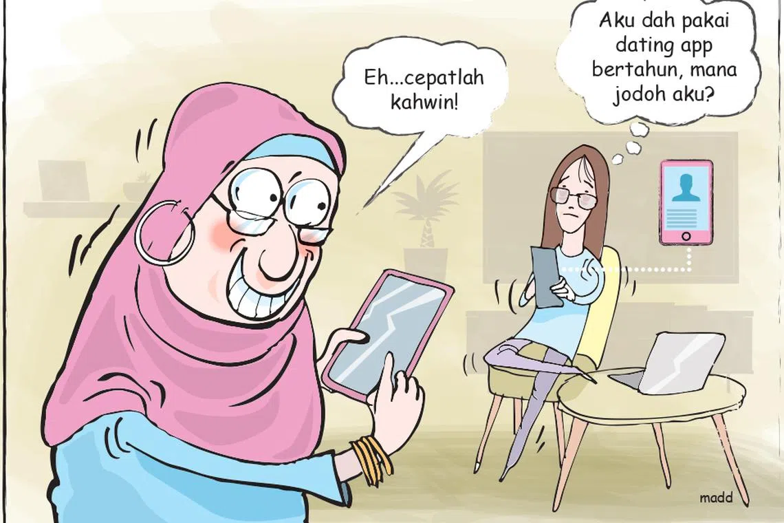 Hari demi hari, jari jemarinya swipe kanan dan kiri. Usahanya tidak putus dek teringin sangat cari pasangan untuk berumah tangga.