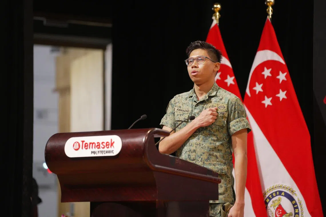 Memimpin sesi ikrar SAF di Politeknik Temasek sempena Hari Angkatan Bersenjata Singapura (SAF) pada 1 Julai, Leftenan (NS) Muhammad Ashadiq Azman, berasa bangga dan bersyukur dengan peluang tersebut “dalam mengesahkan komitmen kami untuk melindungi kedaulatan dan keselamatan Singapura”.