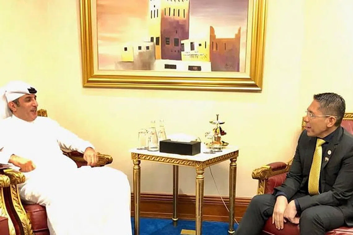 BERTUKAR PANDANGAN: Dr Maliki (kanan) menemui Setiausaha kepada Amir bagi Ehwal Keselamatan Qatar, Encik Mohammed Bin Ahmed Abdullah Al Misnad dan bertukar-tukar pandangan mengenai perkembangan rantau masing-masing. - Foto FACEBOOK DR MALIKI OSMAN -