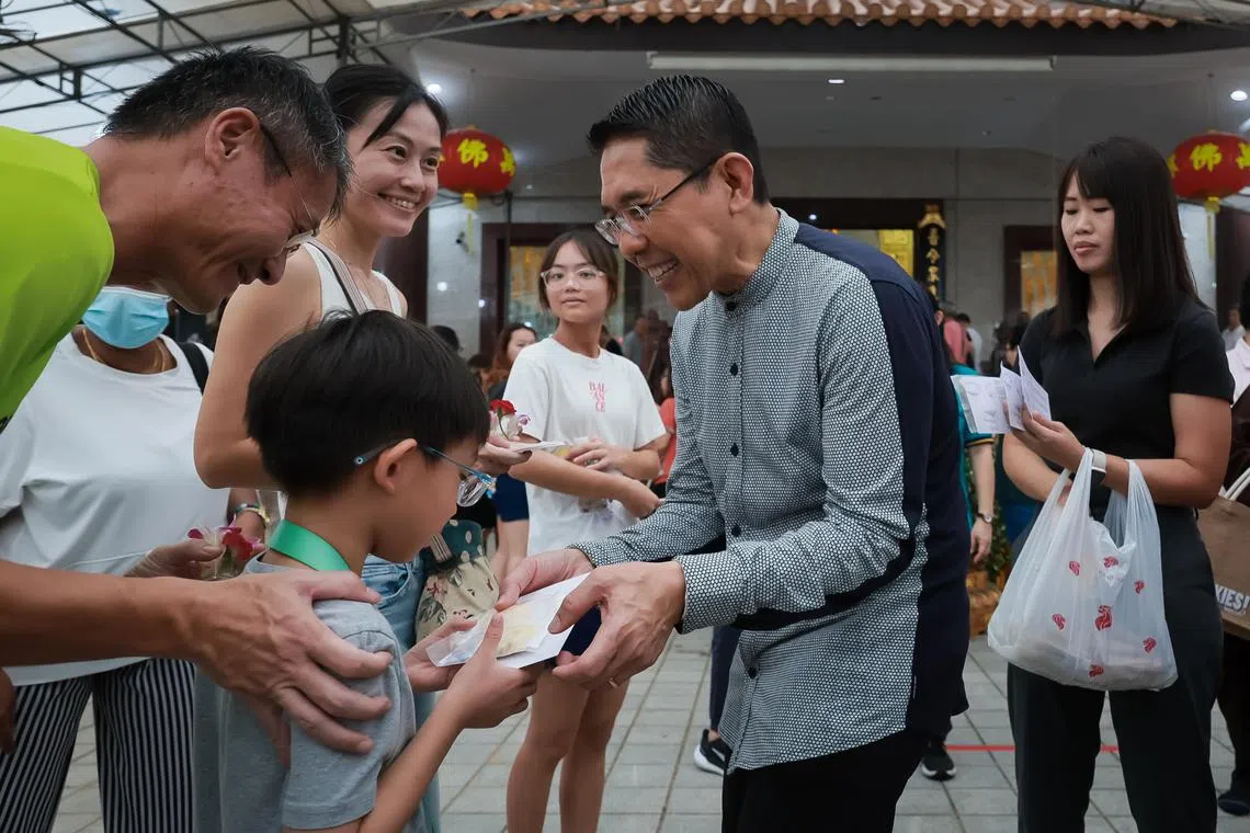 Biskut itu kemudian diagihkan oleh 40 relawan di Kuil Buddha Palelai dan Kuil Man Fatt Lam yang terletak di Bedok.