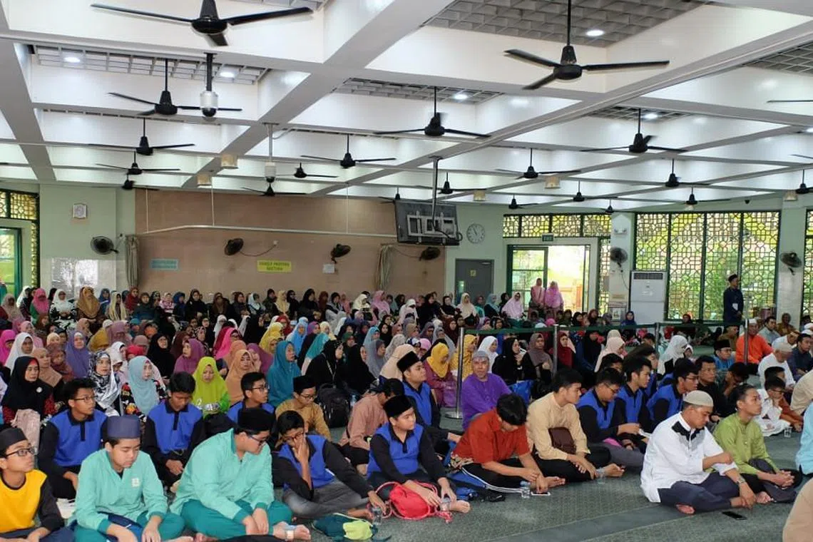 MAULIDUR RASUL DI MASJID KASSIM: Para jemaah menghadiri acara Maulidur Rasul di dewan solat utama Masjid Kassim tahun lalu. - Foto MASJID KASSIM -