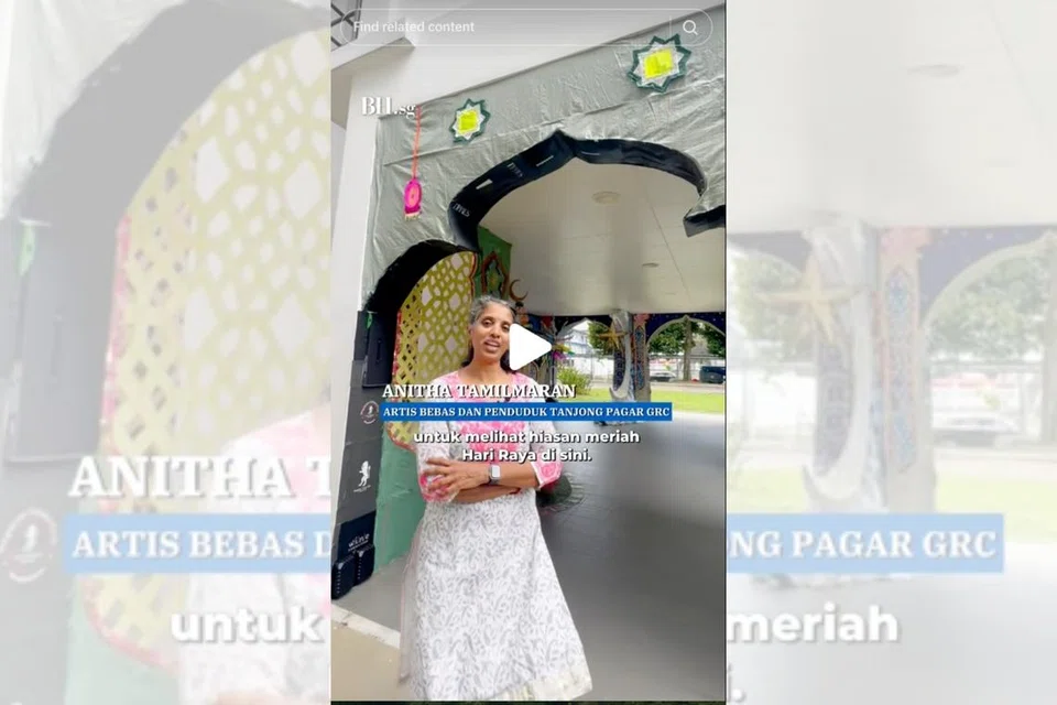 Cik Anitha Tamilmaran, seorang artis bebas dan penduduk di Cantonment Close, menggunakan bahan kitar semula seperti katil bayi, payung dan kadbod menjadi hiasan Hari Raya yang penuh makna.