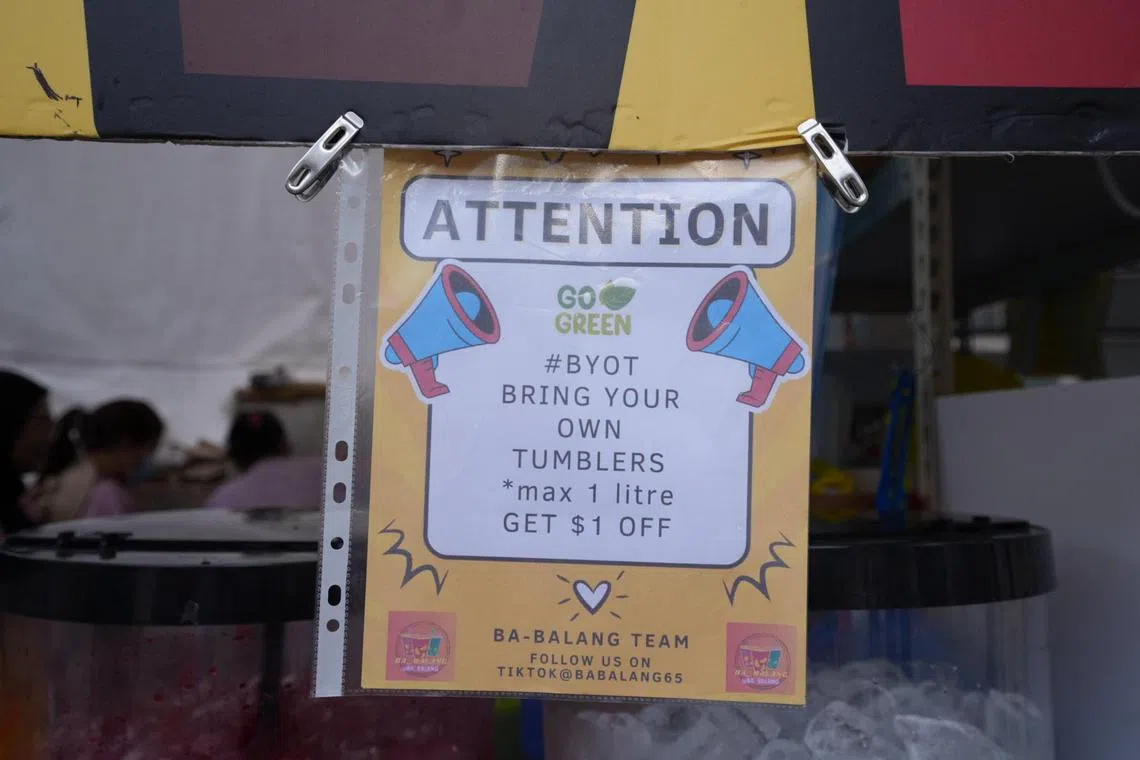 Semakin ramai penjual makanan dan minuman (F&B) di bazar Ramadan utama di Singapura menerapkan amalan dan inisiatif kemampanan dalam operasi mereka.