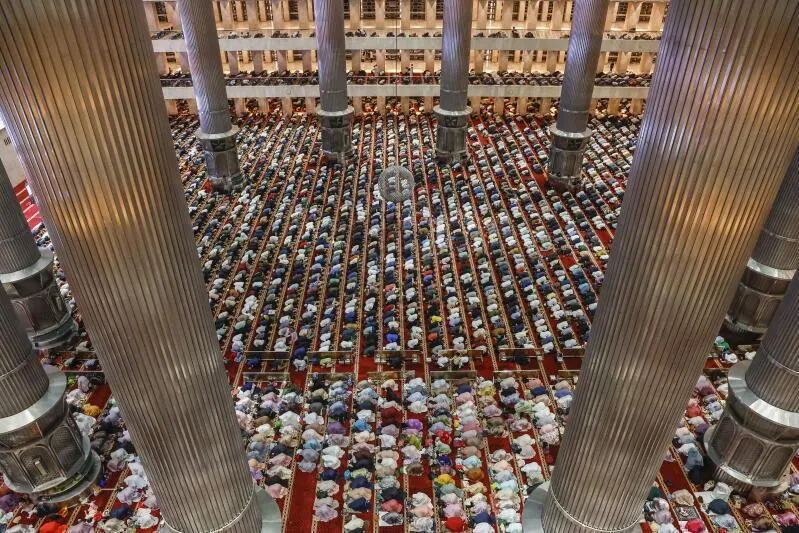 Muslim di Indonesia menunaikan solat tarawih berjemaah di Masjid Istiqlal di Jakarta pada malam tarawih pertama pada 18 Februari 2026. - Foto EPA
