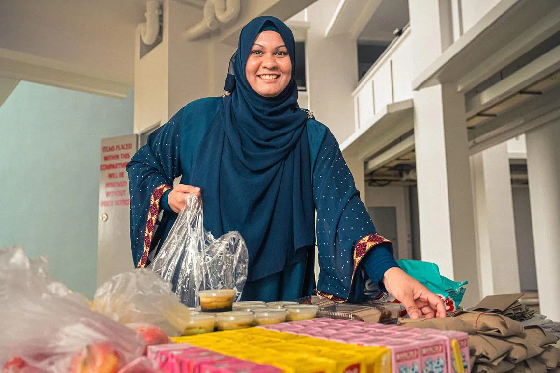 Kemudian, beliau akan menemani ibunya, Cik Nooraisah Peer Mohd, dan bapanya, Encik Ridwan Abdul Razak ke masjid untuk mengagihkan makanan itu dan bergotong-royong bersama relawan lain untuk membuat persiapan untuk berbuka.