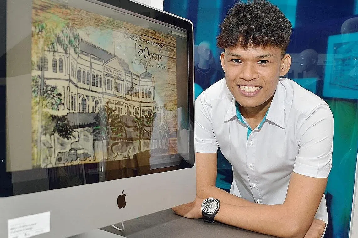 HASIL KERJA SENI UNTUK AMAL: Encik Nur Hamzah M Mohammad Sahak merupakan juara pertandingan mereka poskad anjuran Raffles Hotel Singapore. Poskad beliau akan turut dijual sewaktu penjualan amal poskad di Raffles Hotel Arcade sepanjang 3 hingga 11 Jun ini. - Foto ZAINAL YAHYA -