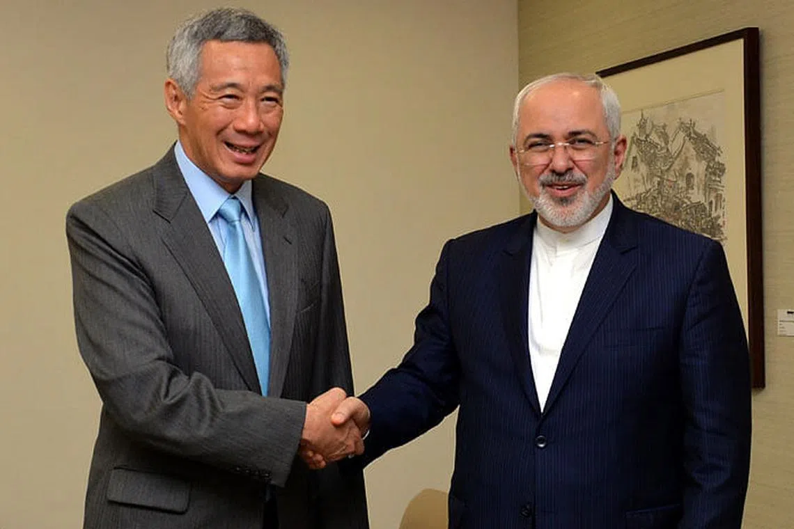 MENTERI Ehwal Luar Iran, Dr Mohammed Javad Zarif (gambar, kanan), menemui Perdana Menteri Encik Lee Hsien Loong di Istana semalam.